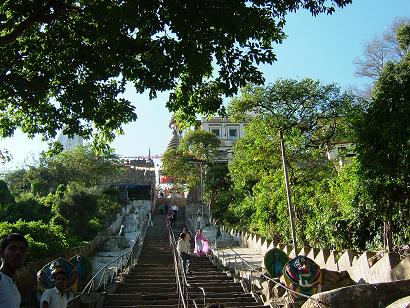 山の上にスワヤンブナートのストゥーパが見えてきた。