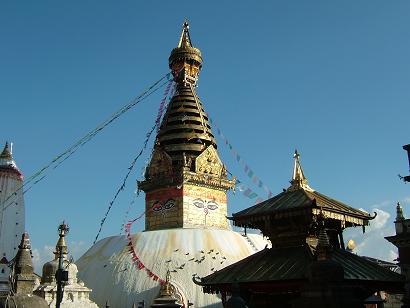 丘の上にあるこのネパール仏教の寺院で有名なのが、目玉の描かれたストゥーパ。