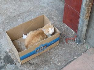 段ボール箱に入ったネコを発見。