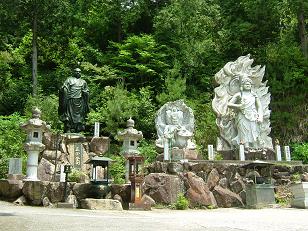 坂を登り切ったところには大きな日蓮聖人像や不動明王像などがズラッと。