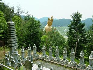 三十三番神から見る黄金の観音像。
