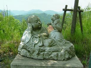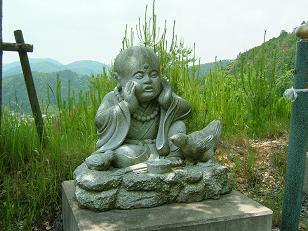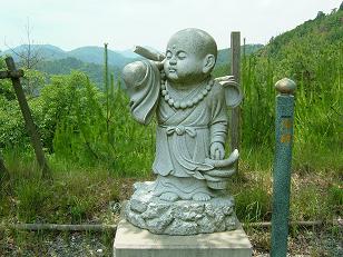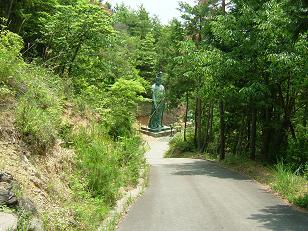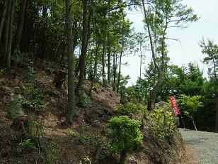 砂利道に入ると、脇の斜面にたくさんの小さな像が。
