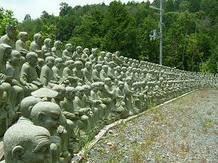 摂津大仏の前の石段を降り、ずらりと並んだ石像から見てもらおう。