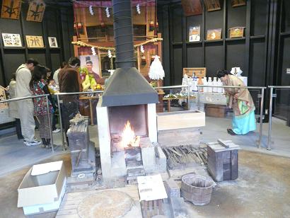 中央の炉に火が入れられ、祈願が行われている。