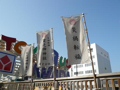 風にはためく貧乏神神社の幟。