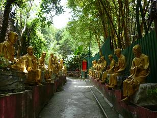 ズラッと参道に並ぶ金ピカの仏像たち。