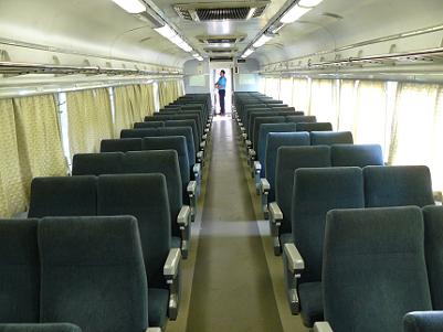 3両連結されているブルートレインのうち、真ん中は2等座席車(オハ14形)で、リクライニングシートが並んでいる。