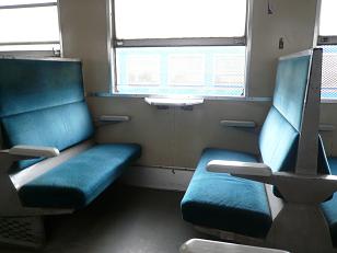 JRになる前、日本国有鉄道の一般車の座席はこんな青い生地だった・・・。
