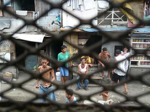 トゥトゥバンの車庫を抜けると、さっそく鉄道敷地内を不法占拠して作られたスラム街。