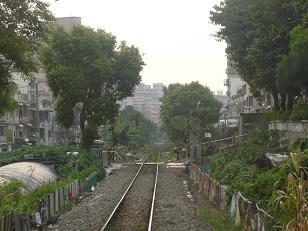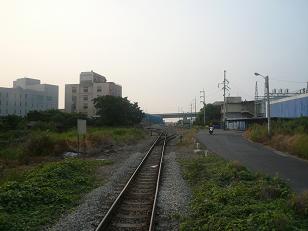 門の奥は使われなくなった中油桃園廠駅(貨物専用)。