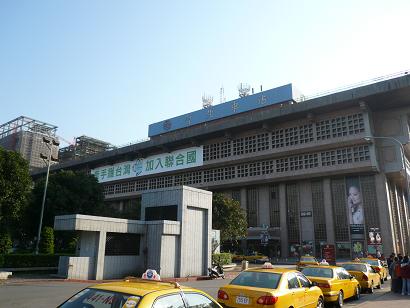 台北駅には「台湾の名で国連に加盟しよう」のスローガンが。