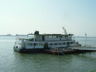 川に突き出た簡素な桟橋に小さな船が見えた。