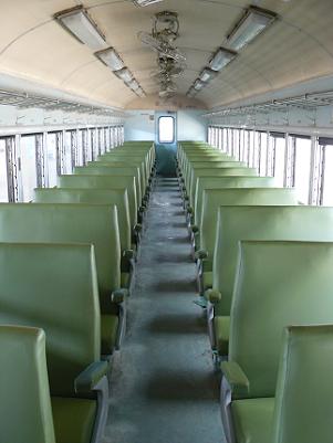 日本製客車の車内には回転式のクロスシートが並ぶ。