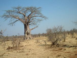 木の下がえぐられているけど、そこはアフリカゾウが食べた跡。