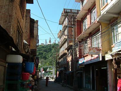 スワヤンブナートには橋からまっすぐ進み、あとは道なりに西へ進めばOK。