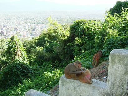 山の上にスワヤンブナートのストゥーパが見えてきた。