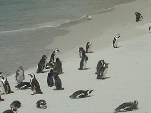 自然の砂浜にペンギンが歩いているっ!