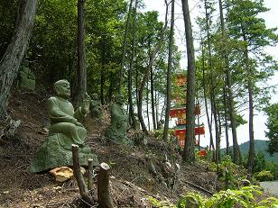 摂津大仏の前の石段を降り、ずらりと並んだ石像から見てもらおう。
