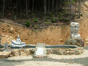 砂利道に入ると、脇の斜面にたくさんの小さな像が。