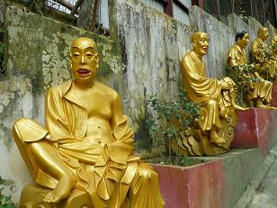 ズラッと参道に並ぶ金ピカの仏像たち。