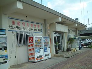 「乗船手続きは、ここから徒歩5分の美崎運輸で行ってください」