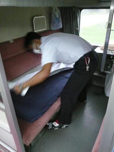 発車してしばらくするとベッドメイクが始まった。