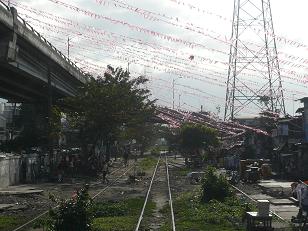 そして列車のすぐ後ろを走り抜けるジプニーを見下ろしていた。