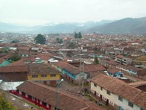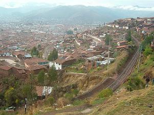 車窓から眼下に見えるのはクスコの市街地。