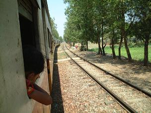 ヤンゴン郊外をのんびりと走る。
