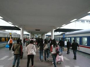 深圳駅まで「和諧号(簡体字:和谐号)」に乗り、九広鉄路東線に乗り換えて香港を目指す。