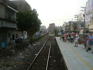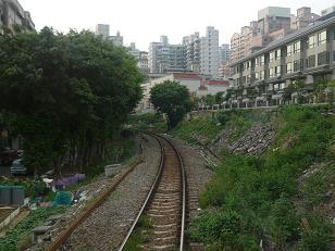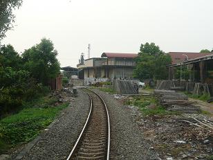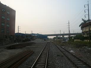 門の奥は使われなくなった中油桃園廠駅(貨物専用)。