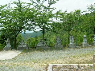 砂利道に入ると、脇の斜面にたくさんの小さな像が。