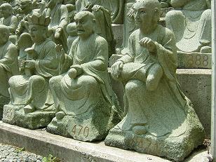 摂津大仏の前の石段を降り、ずらりと並んだ石像から見てもらおう。
