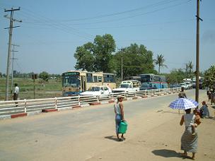 ヤンゴン郊外をのんびりと走る。